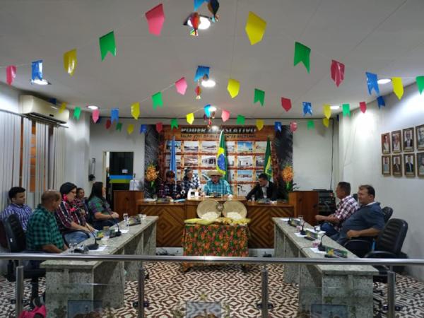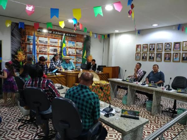 A presidência da Câmara Municipal de São Fernando-RN, em honra ao mês junino onde temos os Santos: Santo Antônio, São João e São Pedro que recebem homenagens e agradecimentos pelas ações protetoras ao povo de fé. A câmara realizou sessão ordinária ontem com o salão enfeitado, parlamentares com vestes adequadas aos festejos juninos, demonstrando assim o relacionamento da Casa do Povo com a cultura de sua gente. E após o encerramento dos trabalhos tivemos o lanche pra todos com comidas típicas das Festas Juninas. Administrando pra crescer junto com o povo!